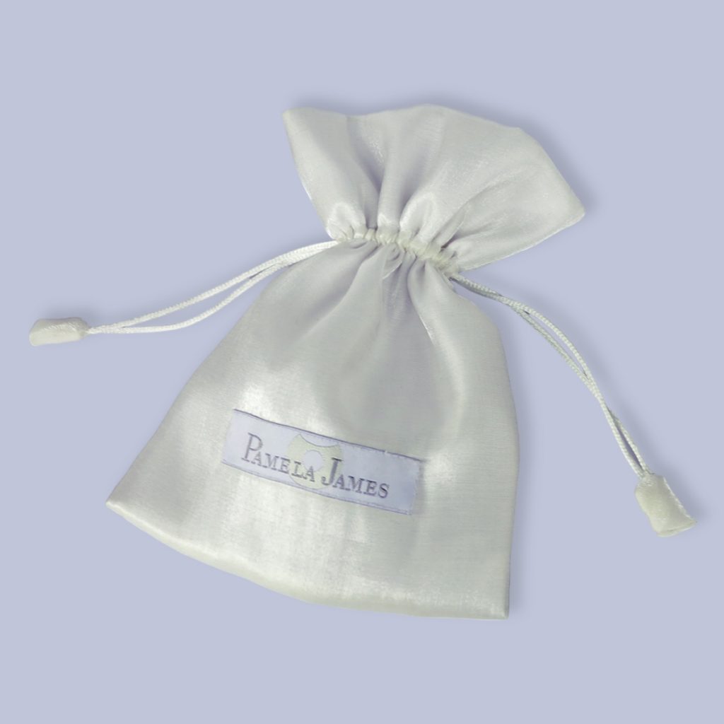 Our Standard Jewelry Pouch is a flat drawstring Pouch –